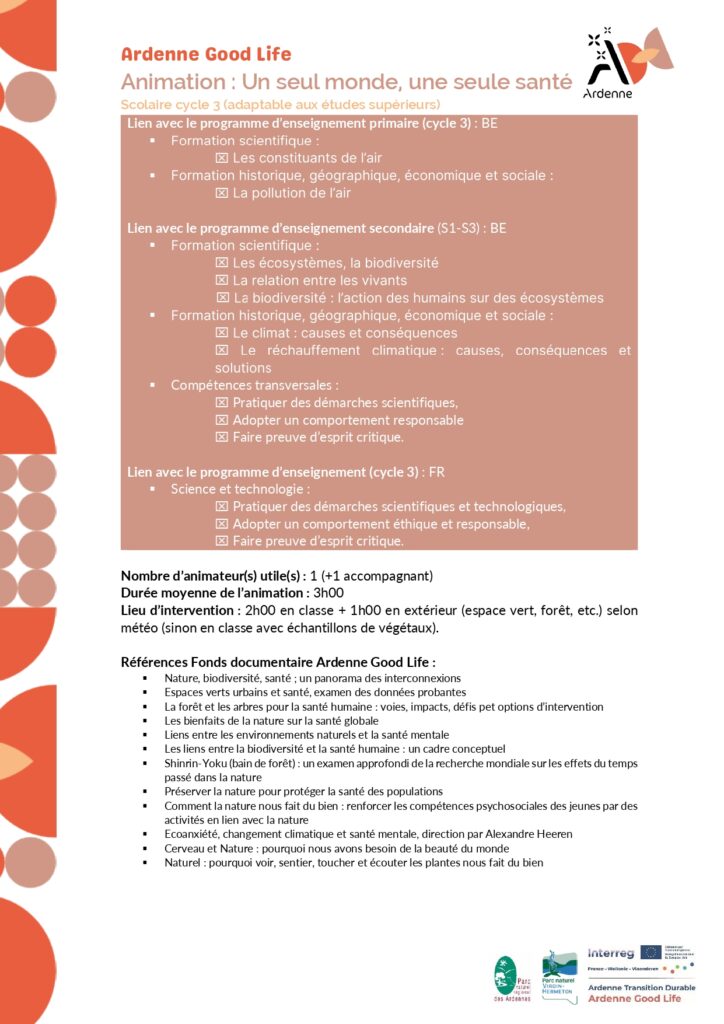 Fiche d’animation “Un seul monde, une seule santé”Nature et santé
