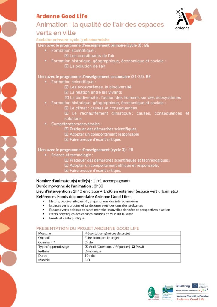 Fiche d’animation “La qualité de l’air et des espaces verts en ville”Nature et santé